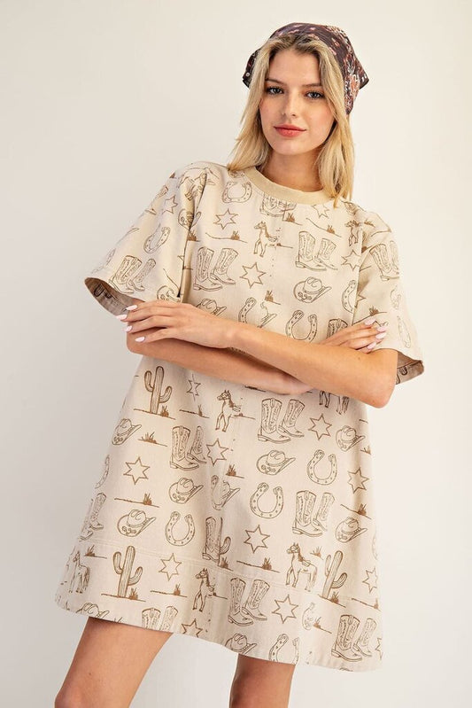 SIENNA MINERAL WASHED WESTERN PRINT DRESS