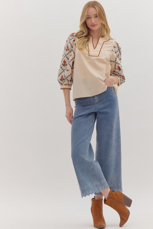 SLOANE ECRU EMBROIDERED SCALLOP TRIM TOP