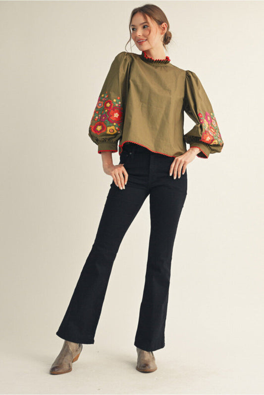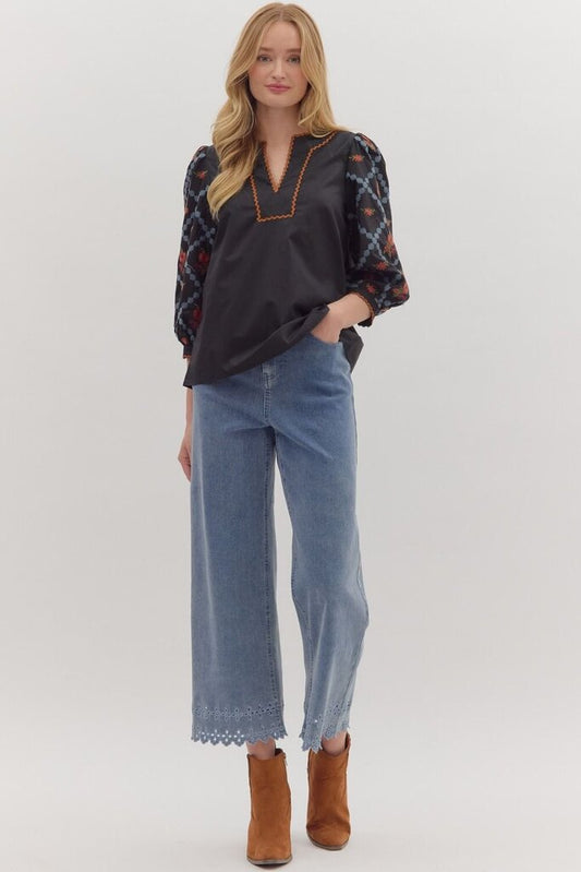 SLOANE BLACK EMBROIDERED SCALLOP TRIM TOP