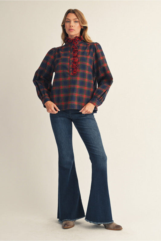 KAYLEE RED SCALLOPED EDGE PULLOVER