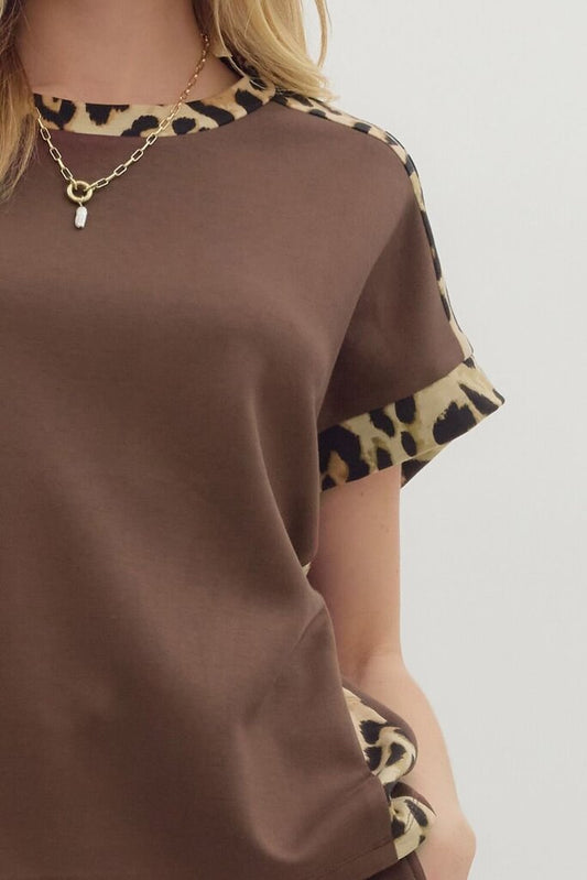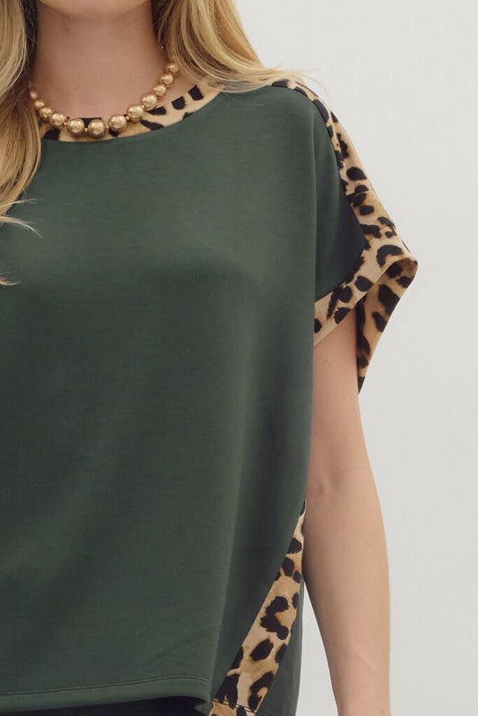 JULIET DARK GREEN LEOPARD TRIM TOP