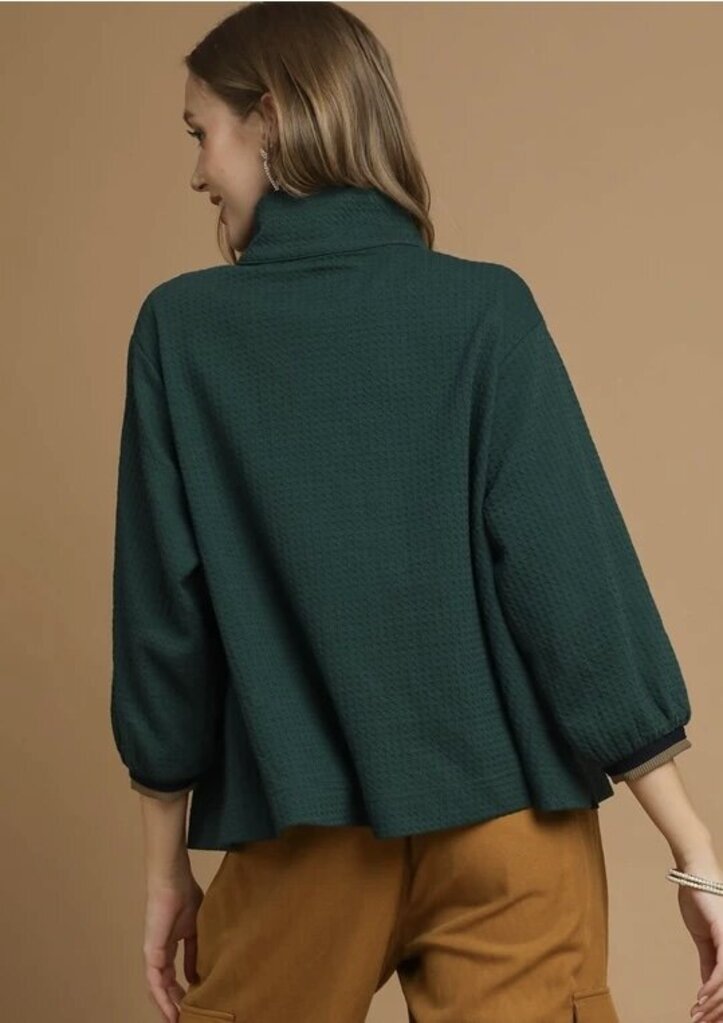 MATILDA GREEN WAFFLE KNIT PULLOVER WITH STRIPED BAND
